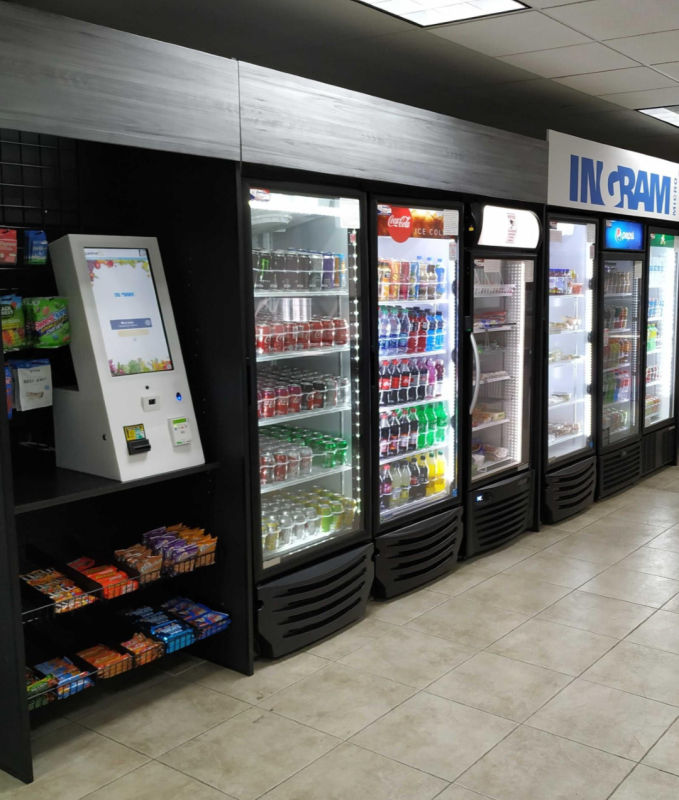 Every market comes standard with beverage and snack coolers and freezers that can store up to 120 items at one time. Cooler sizes can be increased or decreased at the request of the client depending on the space available.